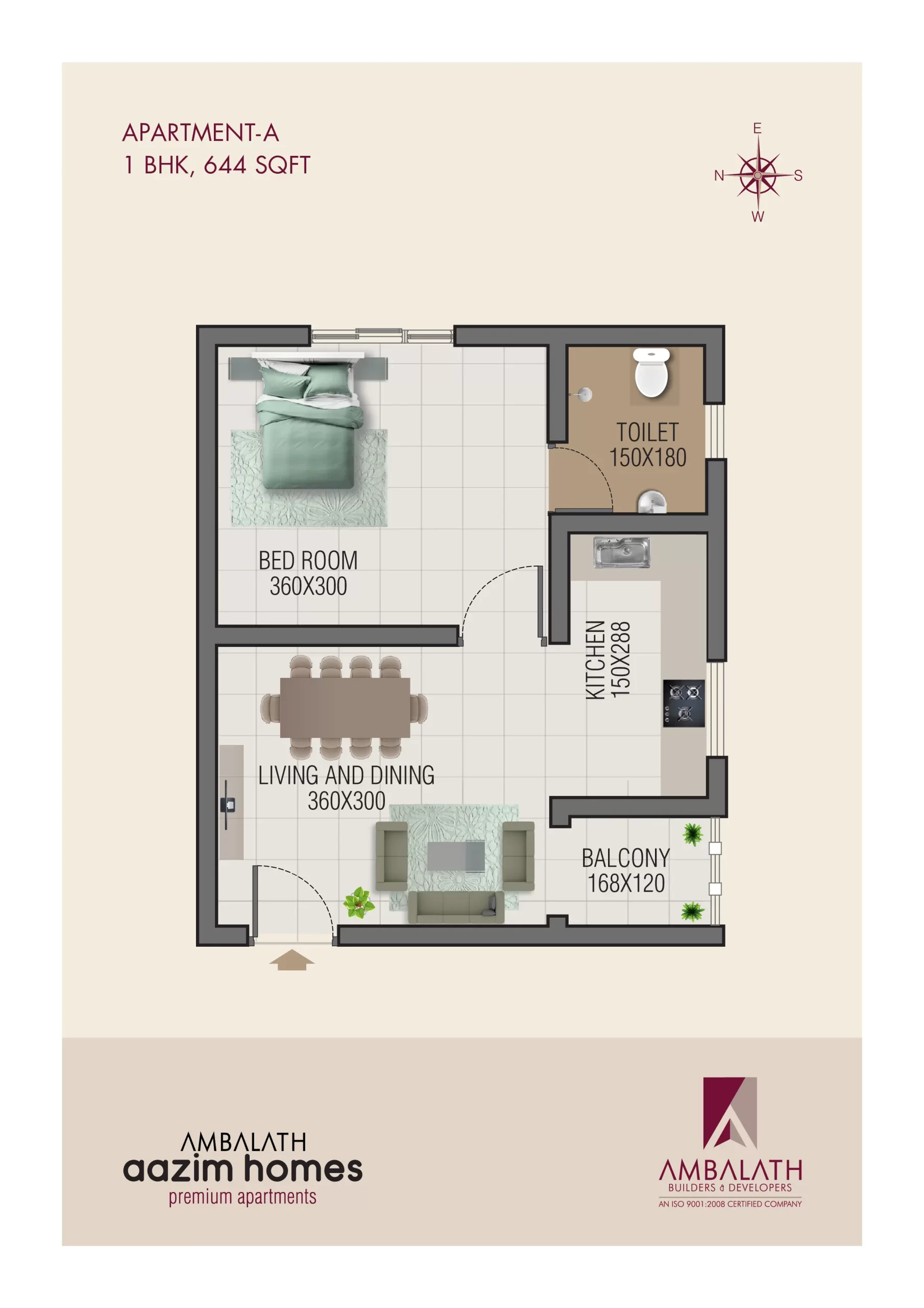 Flat A – 1 BHK, 644 sq.ft