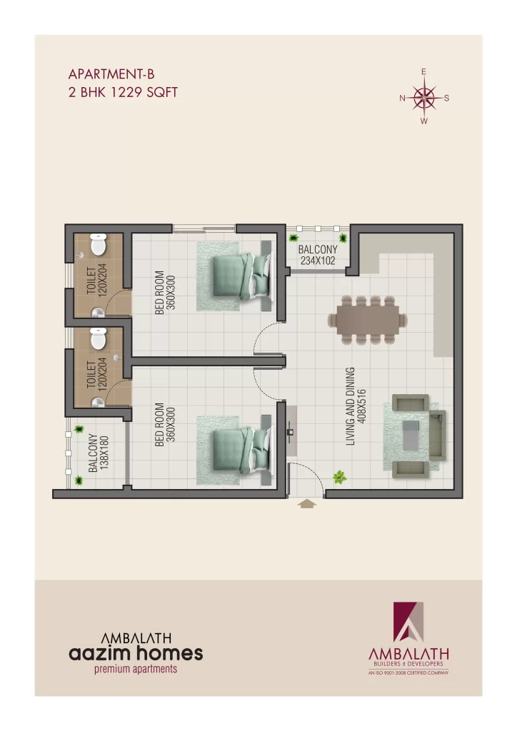 Flat B – 2 BHK, 1229 sq. ft